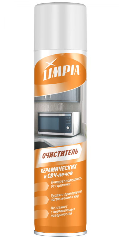 Аэрозоль Лимпия для стеклокерамики и СВЧ — это специализированное чистящее средство, предназначенное для ухода за стеклокерамическими плитами и микроволновыми печами (СВЧ). Оно помогает эффективно удалять жировые загрязнения, налеты и пятна, оставляя поверхности чистыми и блестящими.