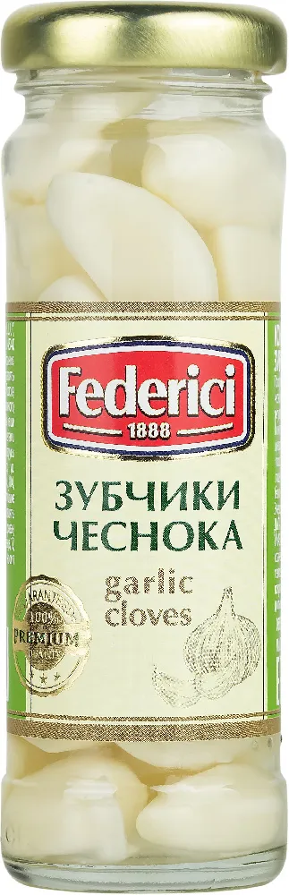 Состав: Зубчики чеснока, вода питьевая, соль, уксус, регулятор кислотности: молочная кислота.