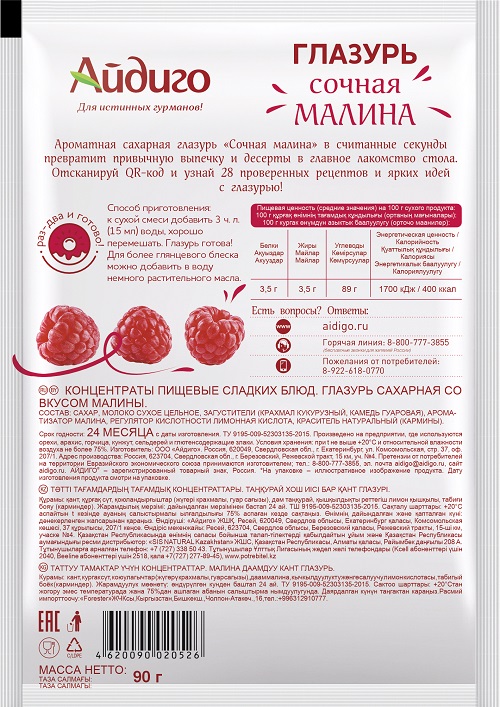 Глазурь сахарная со вкусом малины Айдиго - срок годности до 11 июня 2026.