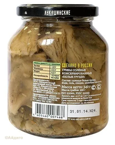 - Грибы грузди белые соленые, без уксуса, Лукашинские