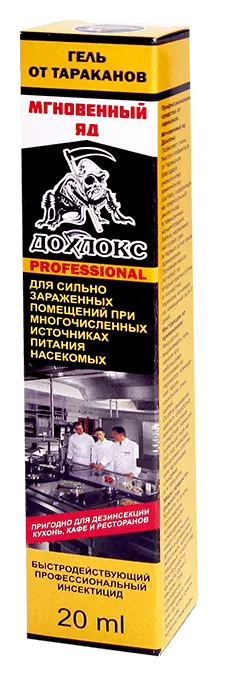 Закажите гель от тараканов оптом или в розницу с доставкой! При использовании геля "Дохлокс Мгновенный яд" необходимо соблюдать меры предосторожности. Избегайте попадания препарата на кожу и слизистые оболочки, а также в пищу и воду. После обработки помещения тщательно вымойте руки с мылом. Храните гель в недоступном для детей и домашних животных месте.