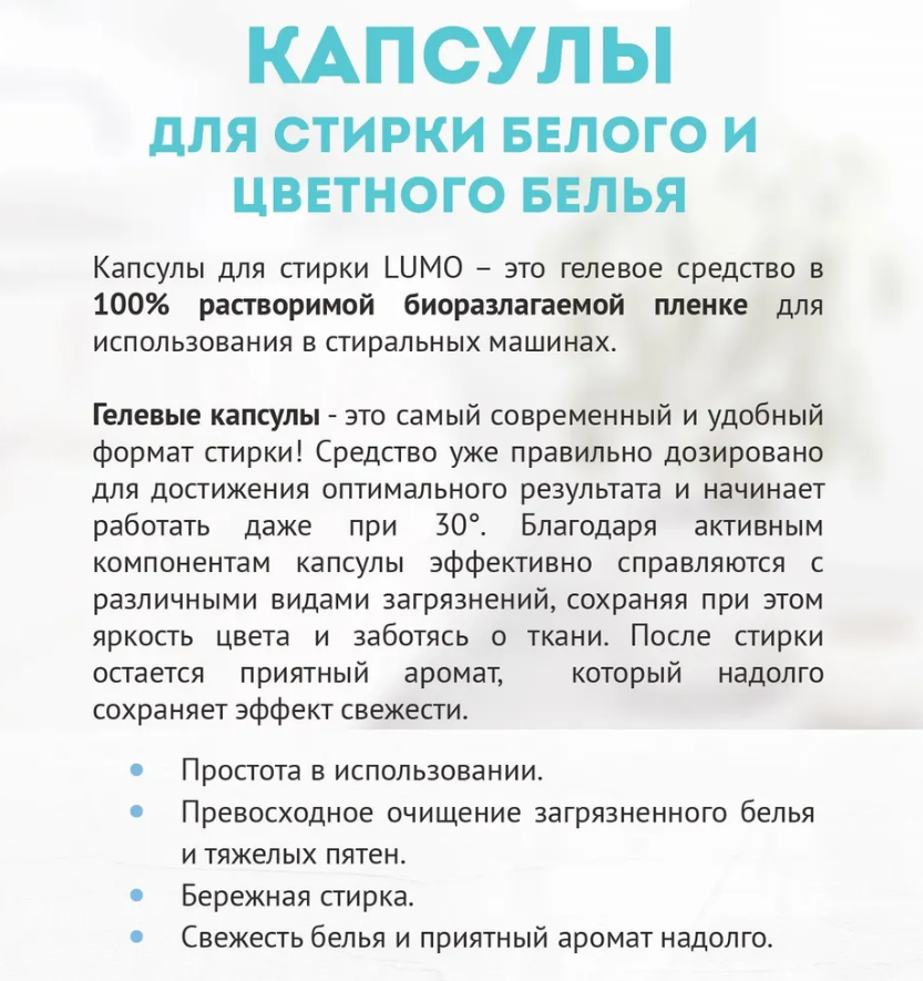 Капсулы LUMO для стирки белого белья 12шт