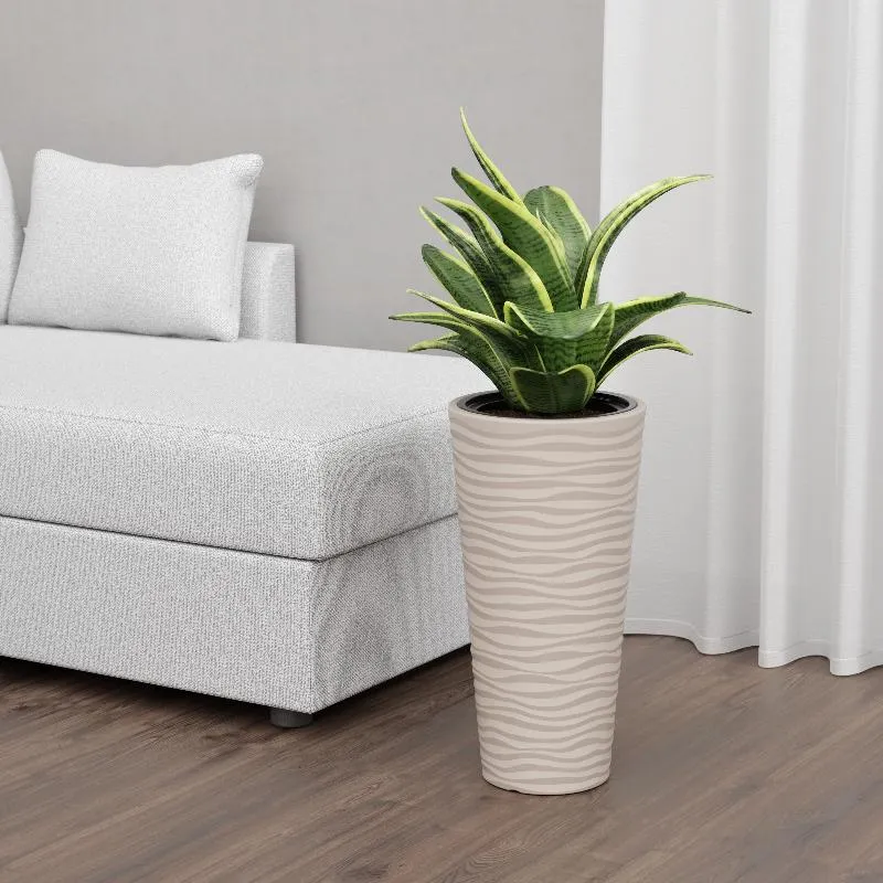 Внешний объем кашпо в 25 литров обеспечивает достаточно места для развития корневой системы даже крупных растений. Это способствует их здоровому росту и обильному цветению. Кашпо изготовлено из прочного и долговечного пластика, устойчивого к воздействию ультрафиолета, перепадам температур и влажности. Это гарантирует его долгий срок службы и сохранение привлекательного внешнего вида.