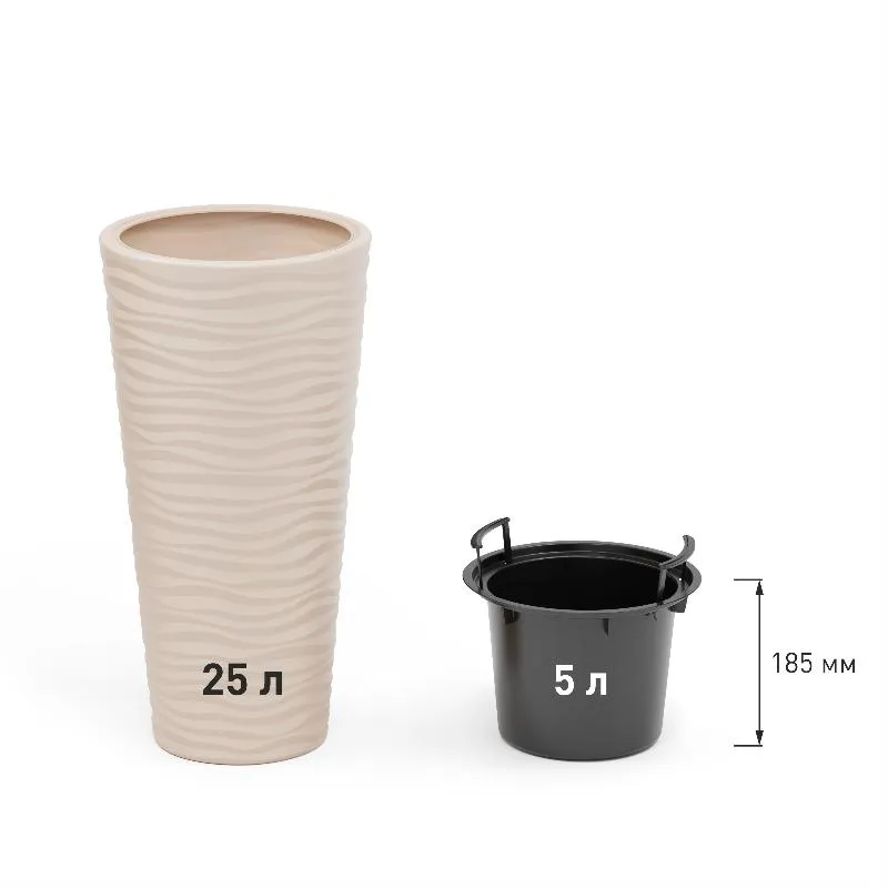 Кашпо Оазис 25л, светло-беж, со вставкой 5л, 1шт, БашПласт