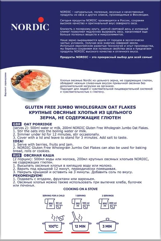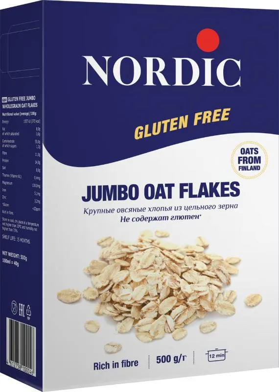 Хлопья Nordic овсяные крупные без глютена 500 г.