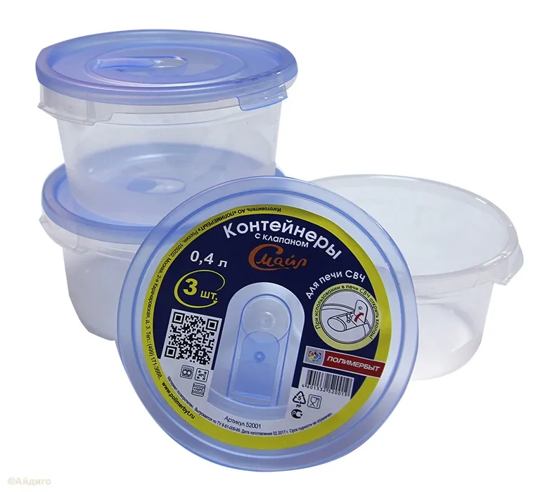 - Комплект контейнеров Смайл круглых с клапаном 3шт 0,4л СВЧ