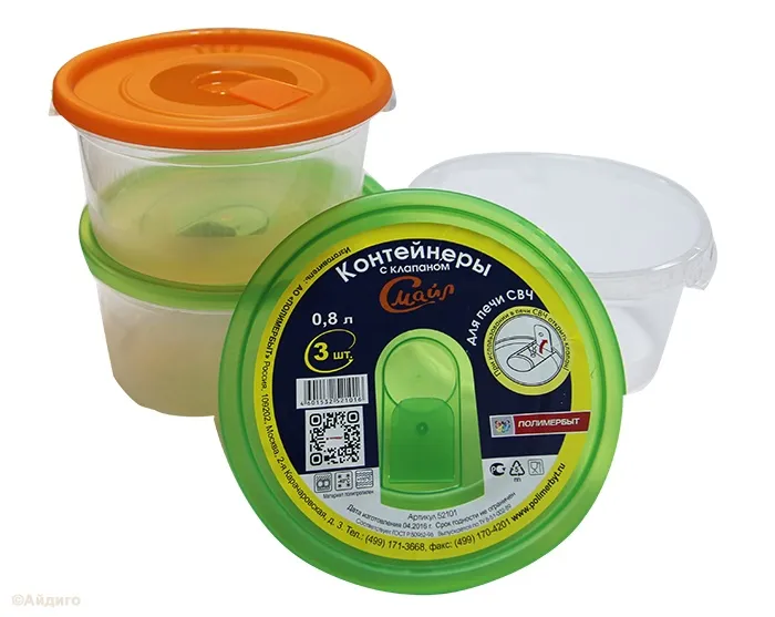 Комплект контейнеров Смайл круглых с клапаном 3шт 0.8л 173 г.