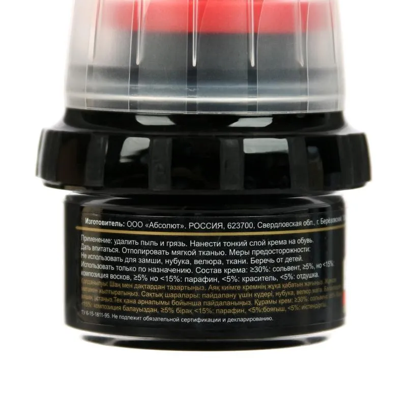Крем специально разработан для ухода за черной кожаной обувью, обеспечивая глубокое питание и защиту материала.