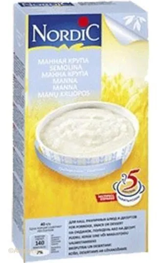 Манная крупа изготавливается из пшеницы. Она быстро разваривается, хорошо усваивается, содержит минимальное количество клетчатки. Манка - единственная крупа, которая переваривается в нижнем отделе кишечника и только там всасывается в его стенки. Она наполняет организм силой. Манка является хорошим средством лечения всех болезней кишечника, очищает организм от слизи и выводит жир. Манная крупа используется не только для приготовления манной каши, но и в кулинарии. Манную крупу добавляют при приготовлении супов, салатов. Готовят запеканки, пудинги, галушки, пирожные и многие другие блюда национальной кухни. Торговая марка: Nordic. Страна: Финляндия. Вес: 550 г.