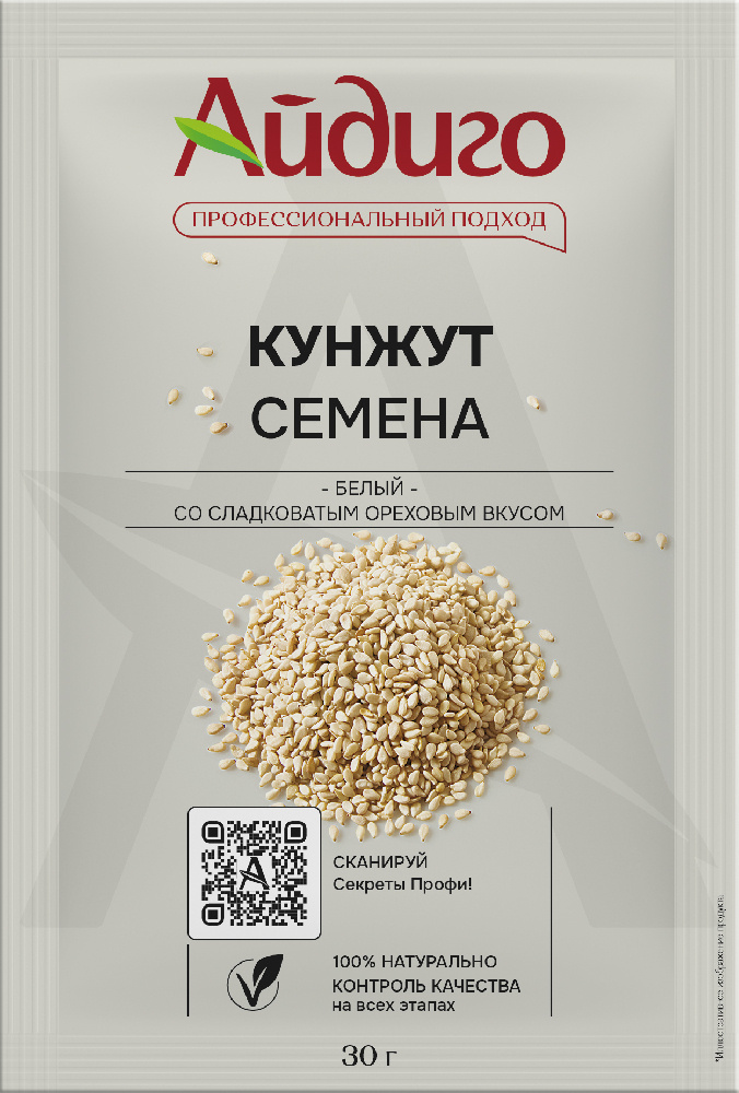 1.Кунжут должен быть сухим и рассыпчатым. И благодаря инновационной упаковке "Айдиго" в кунжут не попадет лишняя влага или пыль.