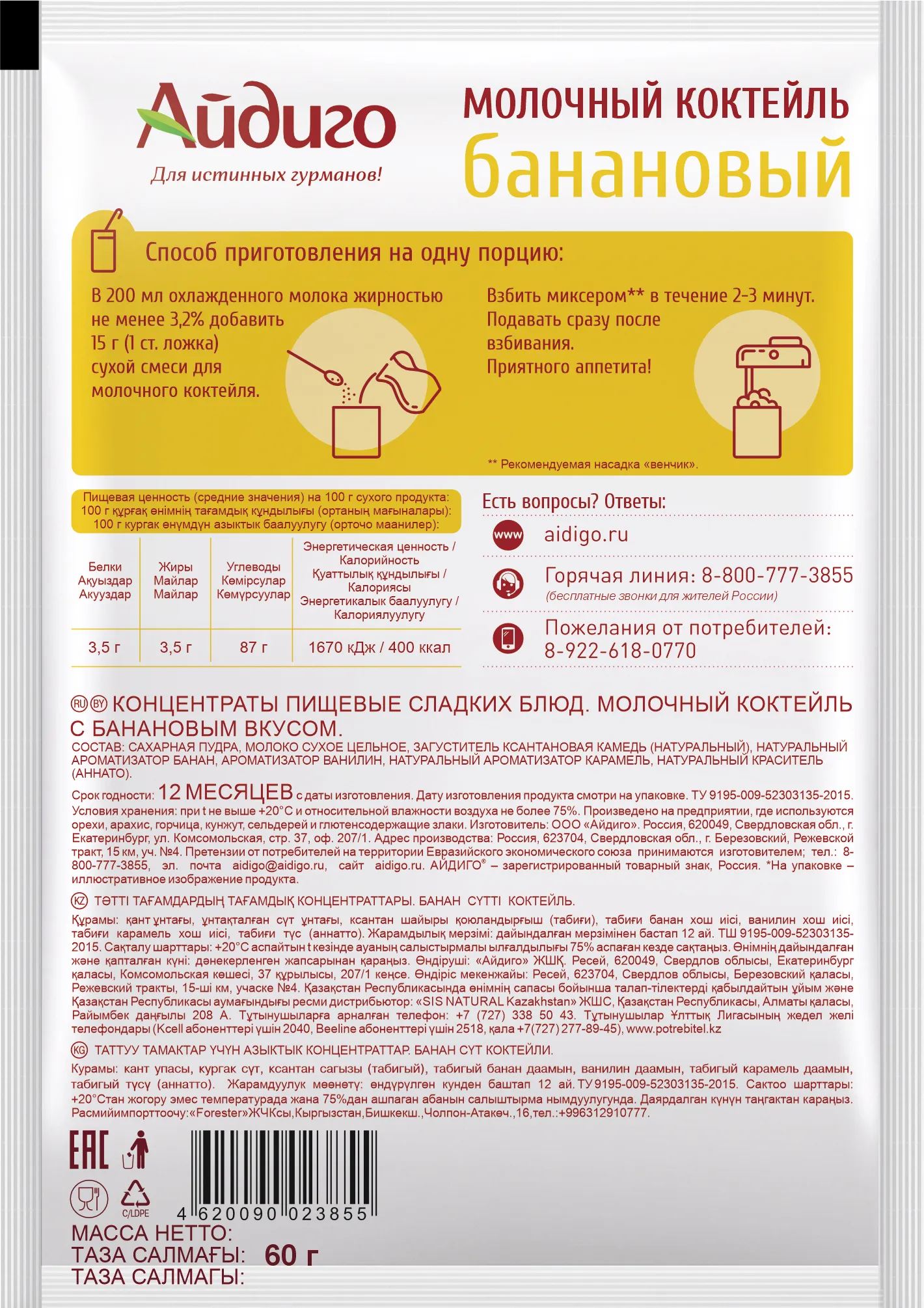 Молочный коктейль "Банановый" Айдиго 60 г.