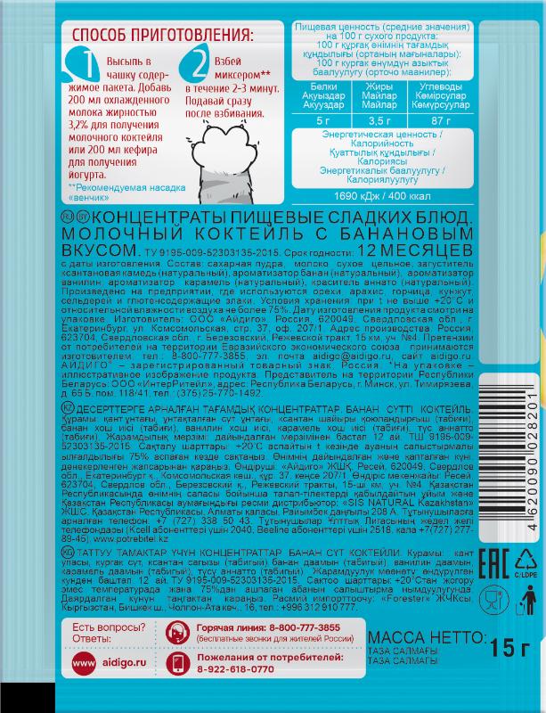 Молочный коктейль "Банановый" Айдиго
