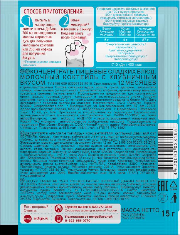 Молочный коктейль "Клубничный" Айдиго