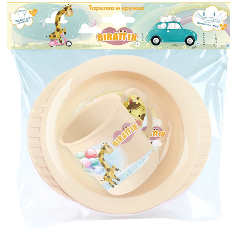 Набор детской посуды Тарелка на присоске и кружка 200 мл Жирафик