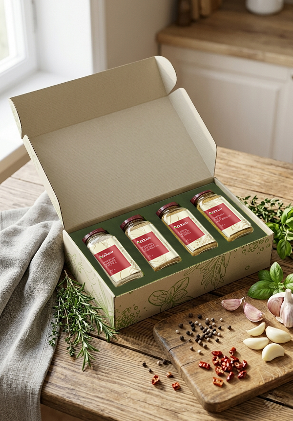 Погрузитесь в мир насыщенных ароматов с нашим премиальным набором приправ в стильных стеклянных баночках, упакованных в эстетичную коробочку с природными зелеными мотивами - идеальный подарок или must-have для вашей кухни. Каждая приправа - это взрыв вкуса из натуральных ингредиентов для шедевральных блюд, без лишних добавок. Благодаря стильной упаковке набор станет прекрасным подарком маме, бабушке, учителю, подруге и всем любителям готовить.