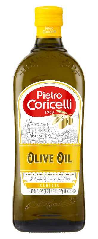 Оливковое масло Pietro Coricelli Pure состоит из рафинированного и нерафинированного оливкового масла. Оно менее ароматное и не обладает ярко выраженным вкусом, как масло категории Extra Virgin.