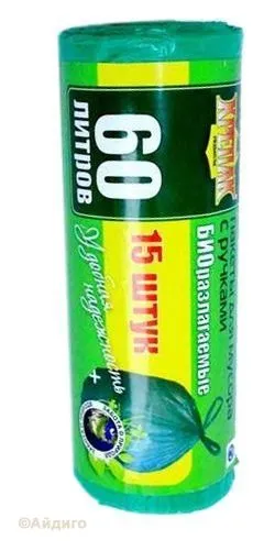 Пакеты для мусора Крепак БИО с ручками 60л 15шт