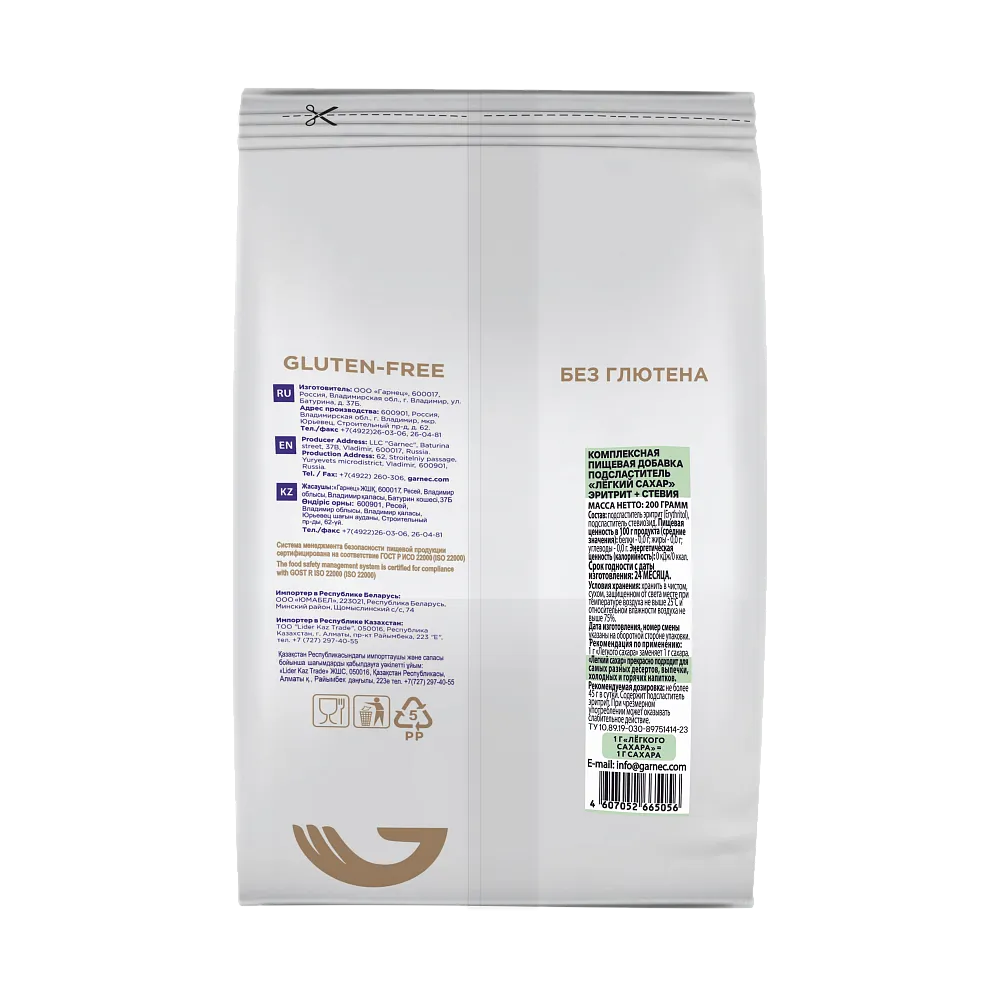 - Подсластитель Легкий сахар (эритрит+стевия), Гарнец