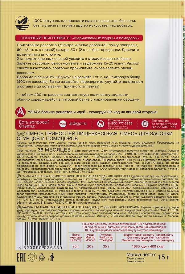 Приправа для засолки огурцов и помидоров