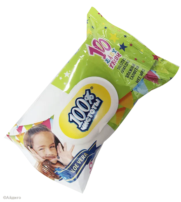 Салфетки влажные 100% чистоты детские с алоэ клапан 100 шт