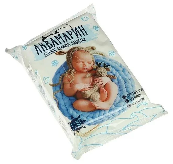 Салфетки влажные Аквамарин Детские без запаха 72 шт.