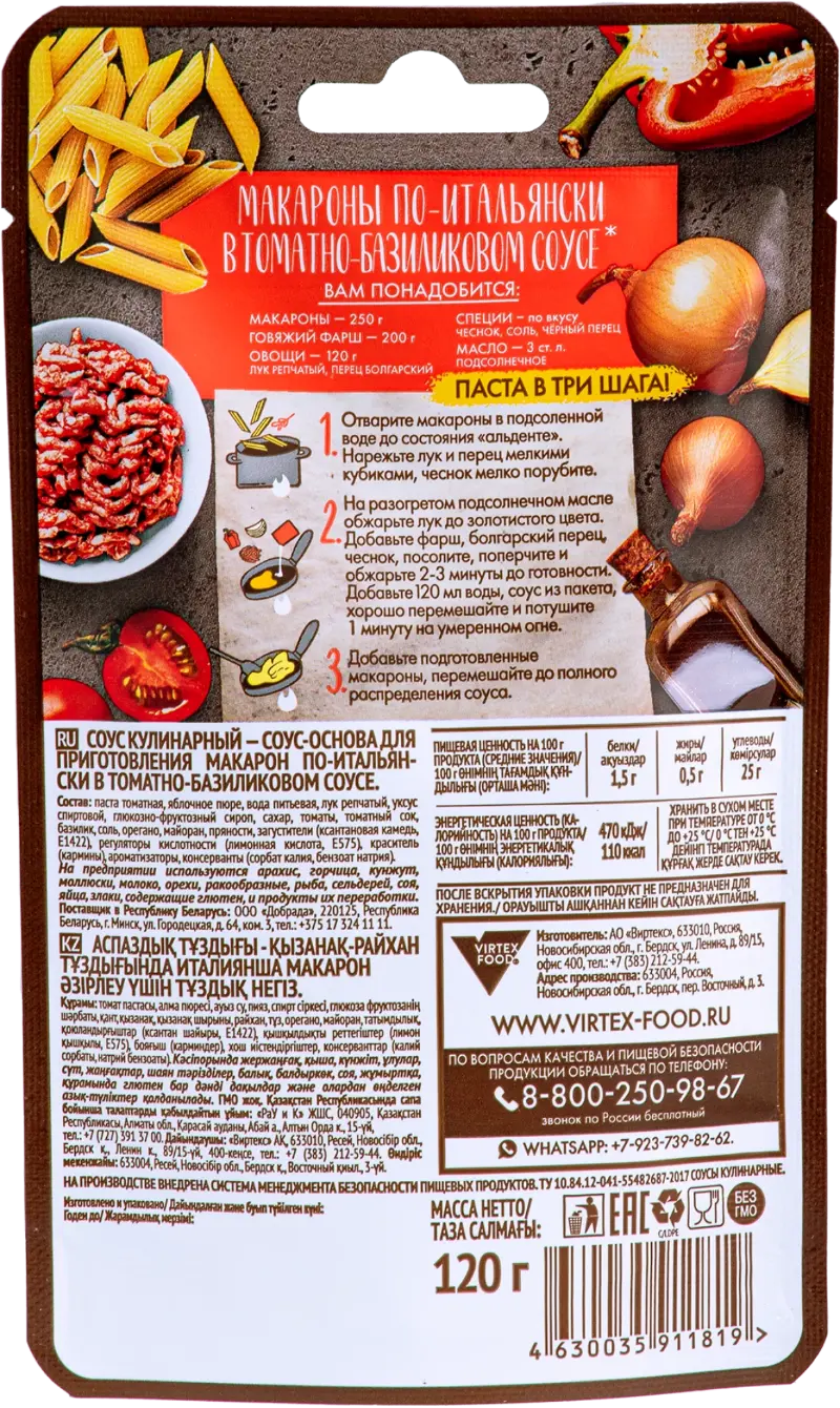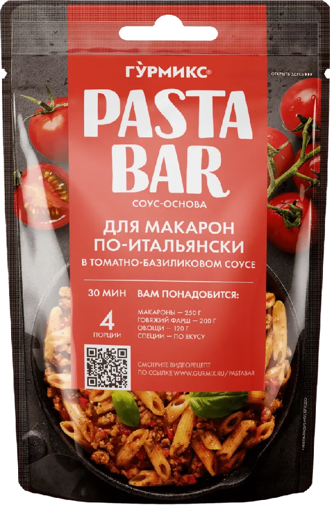 Соус-основа для приготовления макарон по-итальянски в томатно-базиликовом соусе, Гурмикс