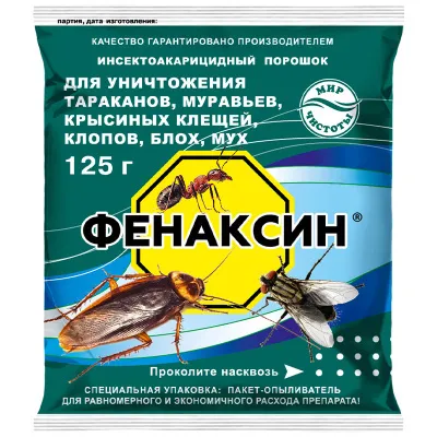 Фенаксин L – инсектоакарицидный препарат в форме дуста, представляющий собой порошок белого или сероватого оттенка, который уже готов к использованию.