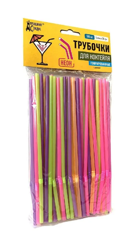 Трубочка для коктейля Неон, 100 шт, Домашний сундук 46 г.