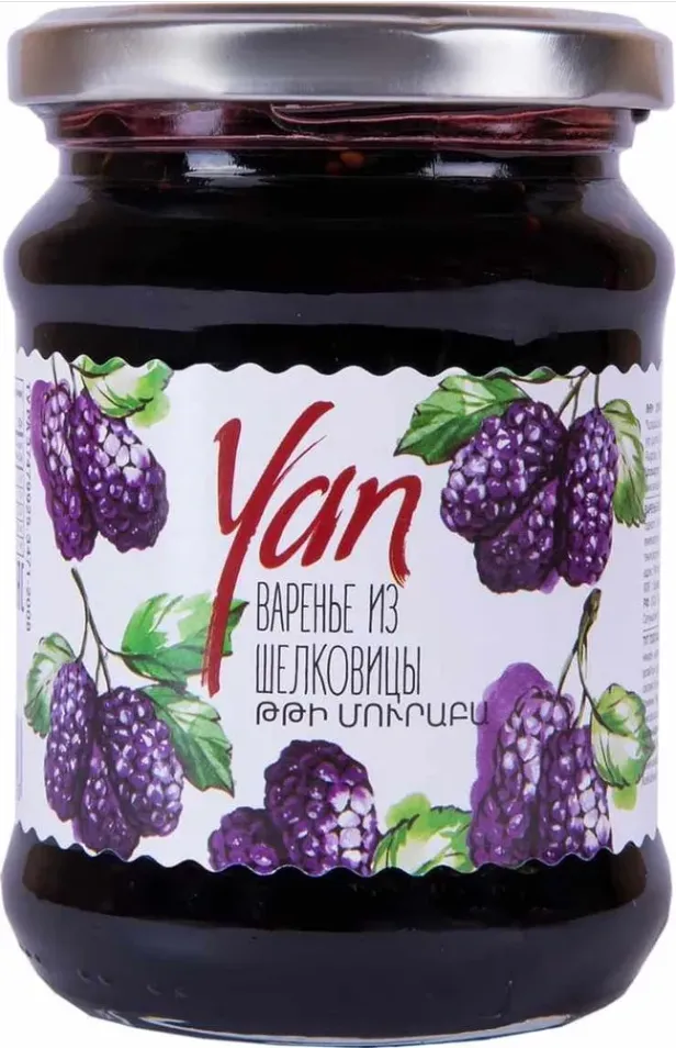Варенье из шелковицы, YAN - натуральный вкус и аромат свежих ягод, делая варенье YAN не просто десертом, а настоящим источником витаминов и микроэлементов.