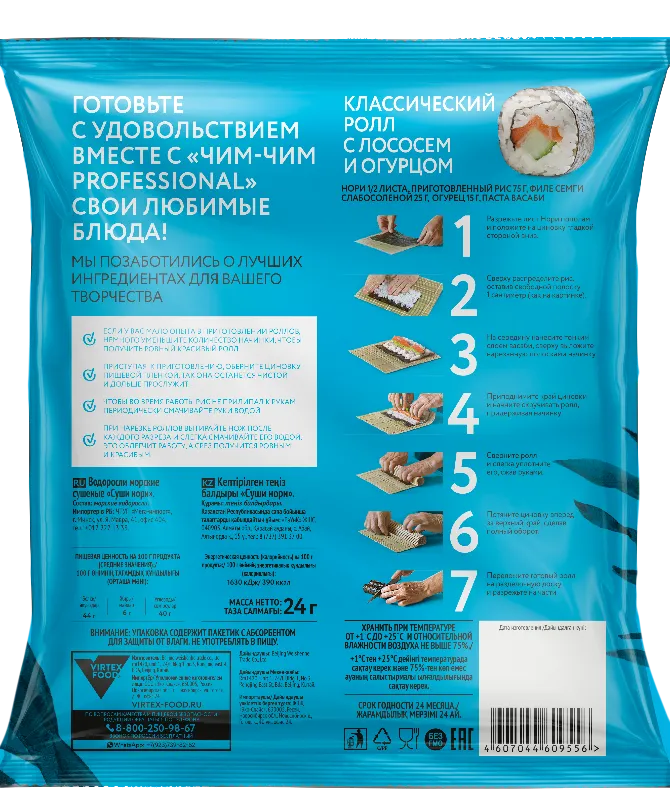 Высококачественный продукт из экологически чистых водорослей обработан особым способом, сохраняя максимум полезных веществ и обеспечив прекрасный вкус.