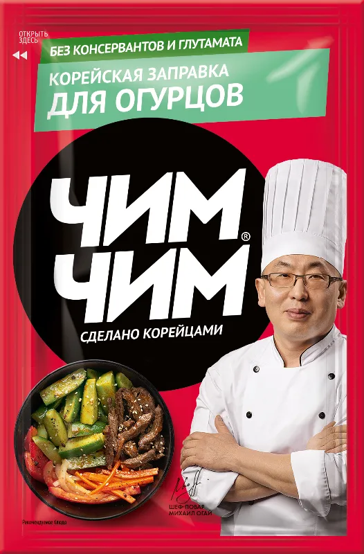 Заправка корейская для огурцов, Чим-Чим - приготовьте традиционные корейские огурцы легко и быстро с оригинальной заправкой "Чим-Чим"! Натуральный состав бережно раскрывает свежие огуречные оттенки, придавая вкусу необходимую пикантность и сочность. Используйте готовый продукт сразу или дайте настояться немного дольше - и получите идеальный гарнир или самостоятельное блюдо для всей семьи.