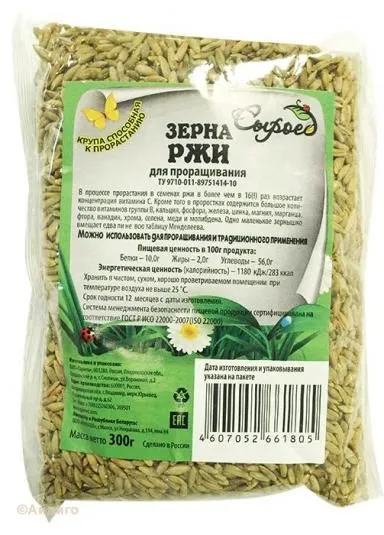 Продукция под торговой маркой "Сыроед" предназначена для всех: для людей придерживающихся обычной диеты и для сыроедов. "Сыроед" - это "живой" продукт в прямом смысле этого слова - это цельное не нарушенное зерно, способное к прорастанию. Пророщенное зерно - это хорошая "прививка" иммунитета и эффективное средство для получения биологически активных компонентов пищи: витаминов, минеральных веществ, аминокислот и др., причём в особой, удобоусвояемой для организма форме. Пищевая и биологическая ценность у пророщенных зерен ржи значительно выше, чем у продуктов переработки этого злака. В прорастающем зерне активизируются все жизненные процессы, благодаря чему, количество и качество активных микроэлементов увеличивается в 5-15 раз. Разрушаются вещества, препятствующие полноценному усвоению организмом, необходимых для нормальной жизнедеятельности минеральных веществ, таких как кальций, магний, цинк и др. Торговая марка: Гарнец. Страна: Россия. Вес: 300 г